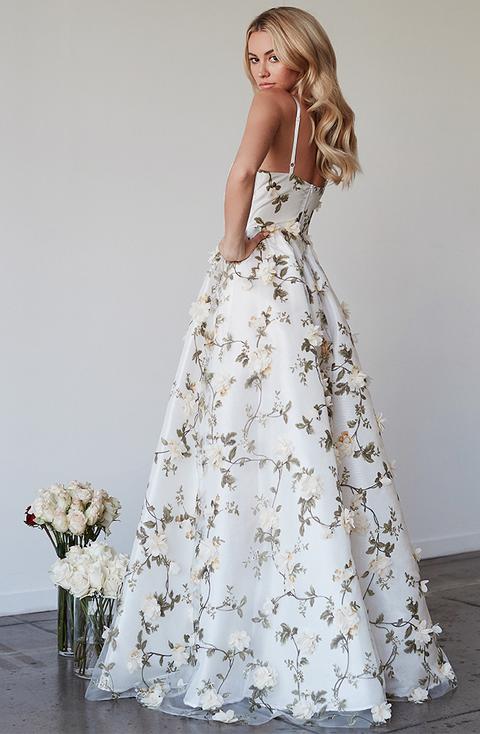Prom Dress Sleeveless V-Neck Spaghetti Strap Satin Lace A-Line Floor Length With Flowers