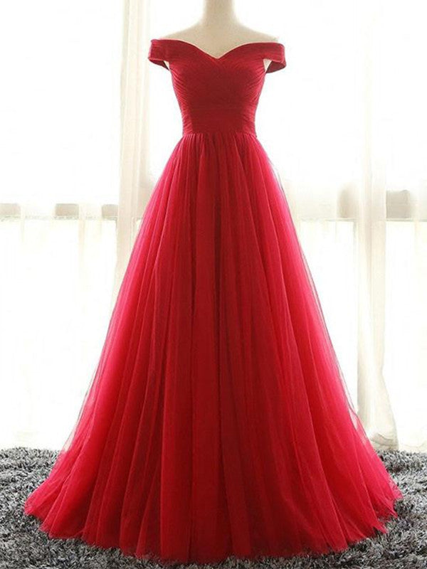 Red A Line Off Shoulder Tulle Prom Dress, Formal Graduation Dresses