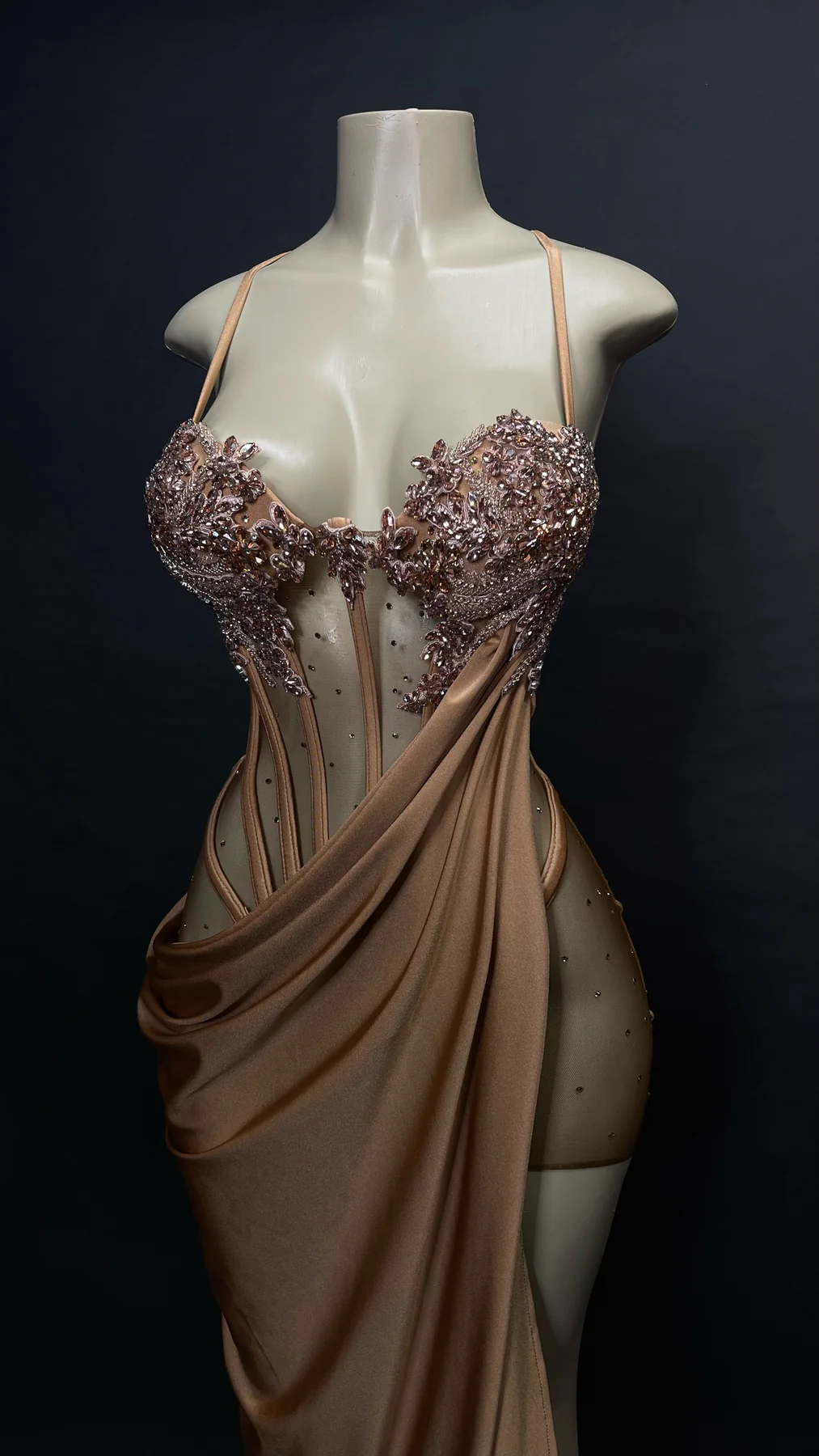 Sexy Mermaid Straps Slit Velvet Prom Dress P985