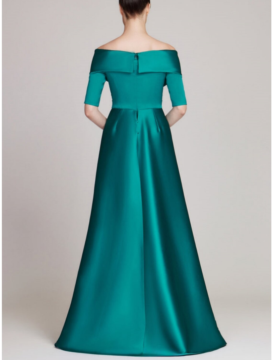 Sheath / Column Evening Gown Elegant Dress Formal Sweep / Brush Train Half Sleeve Off Shoulder Satin with Ruched 2025