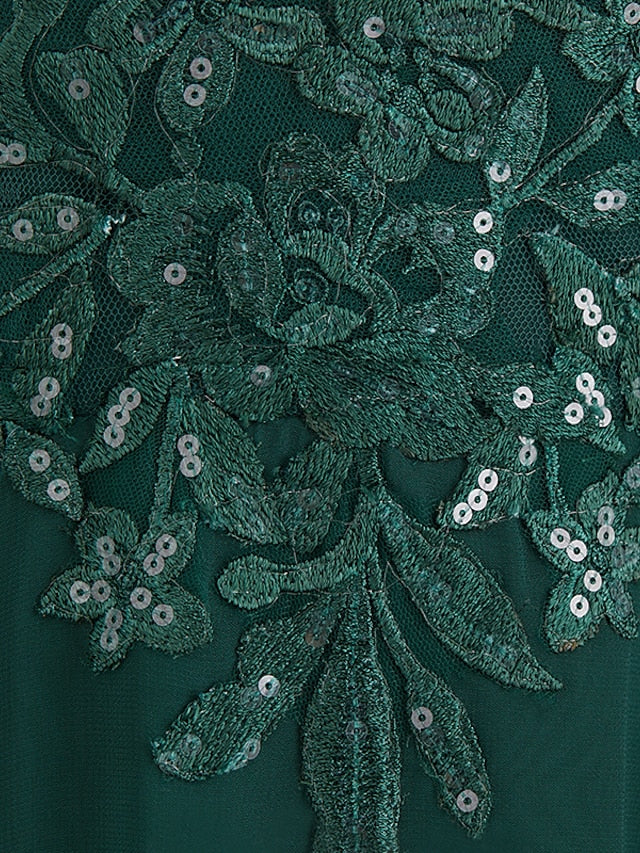 Sheath / Column Mother of the Bride Dress Wedding Guest Vintage Party V Neck Floor Length Chiffon Lace Sleeveless with Pleats Sequin