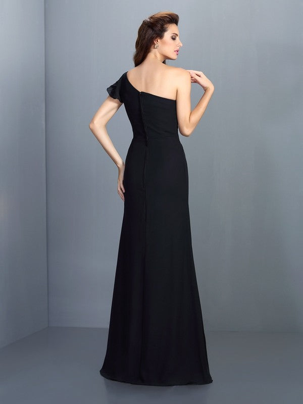 Sheath/Column One-Shoulder Pleats Sleeveless Long Chiffon Bridesmaid Dresses