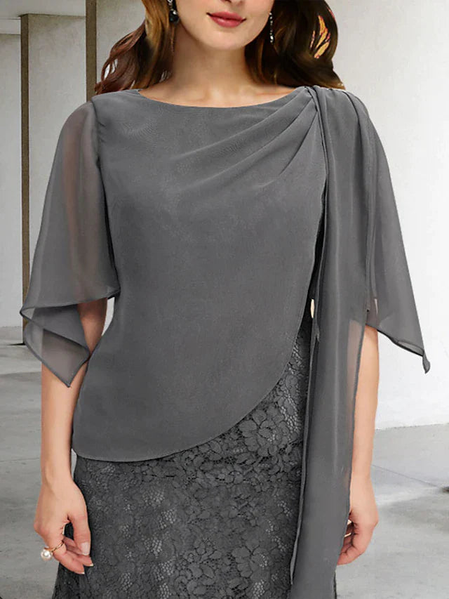 Sheath / Column Plus Size Curve Mother of the Bride Dresses Elegant Dress Formal Floor Length Half Sleeve Jewel Neck Chiffon with Splicing