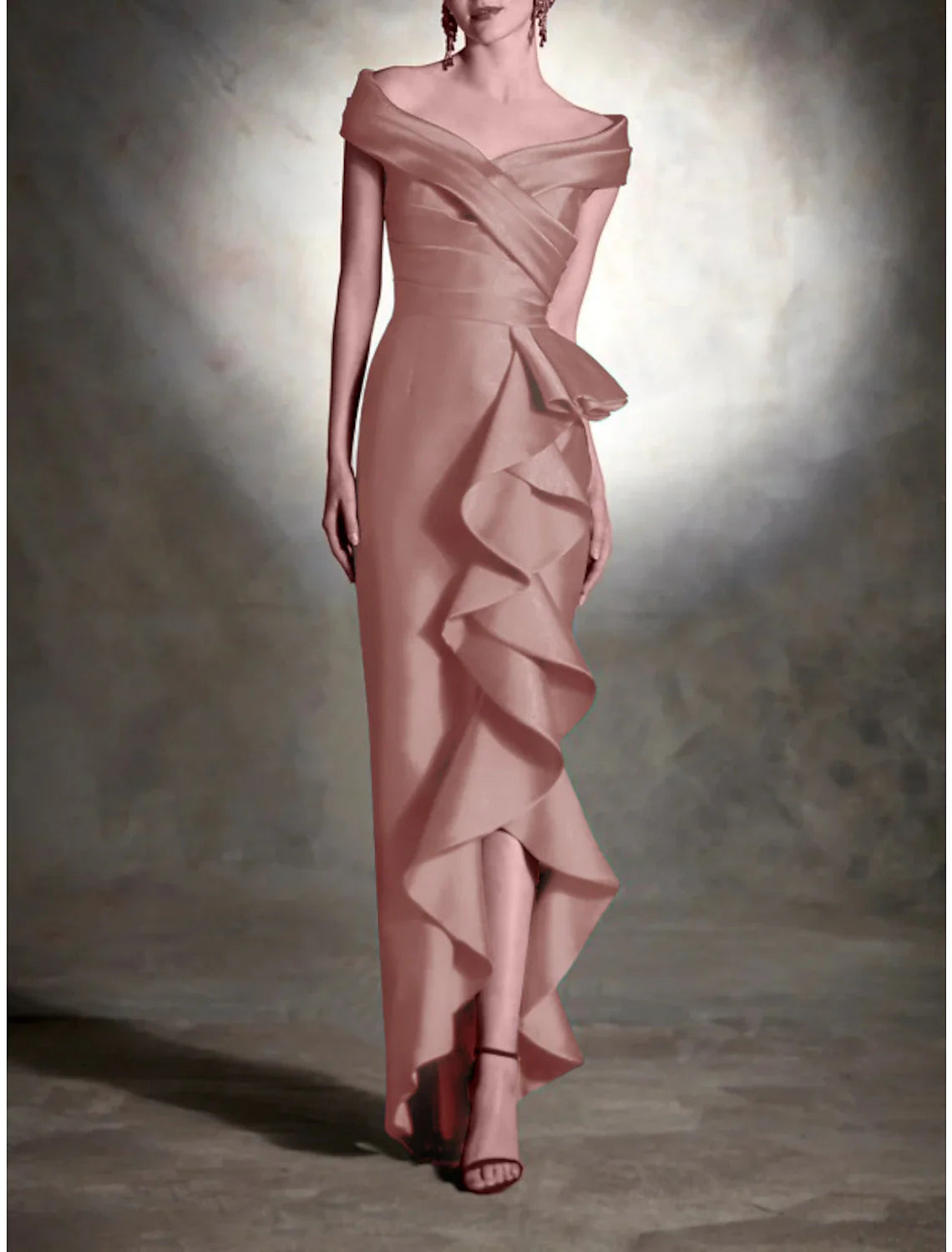 Sheath Formal Dress Cocktail Dresses Christmas Red Green Dress Vintage Dress Formal Wedding Guest Asymmetrical Sleeveless Off Shoulder Satin with Ruffles 2025