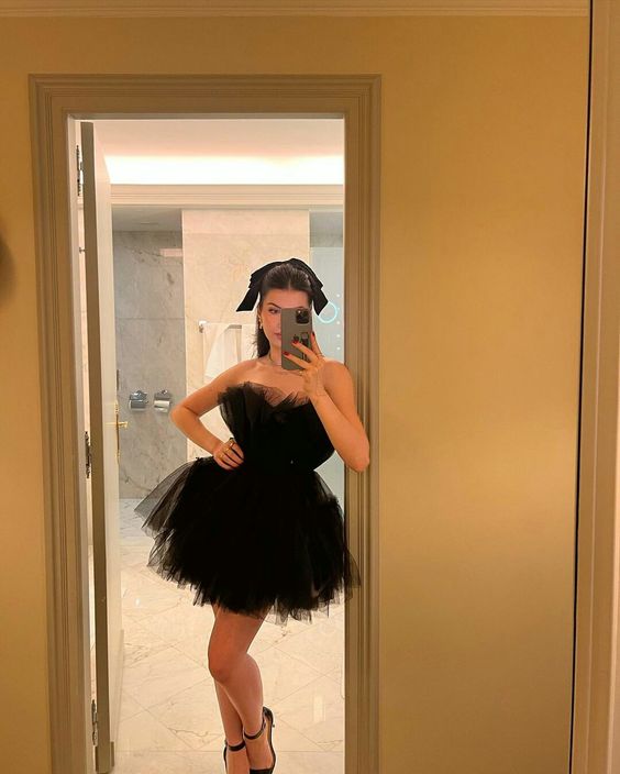 Simple A-Line Black Strapless Tulle Multi-Layered Homecoming Dress P2294