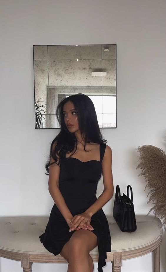 Simple A line Straps 18th Birthday Dresses Black Birthday Outfits P1052
