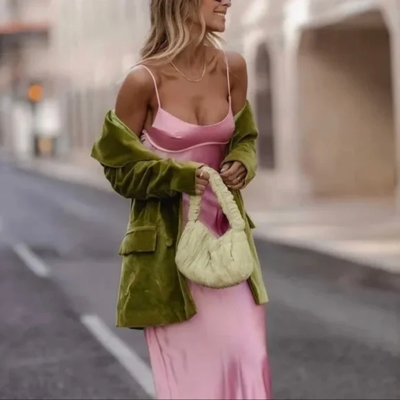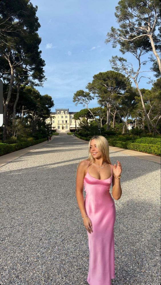 Simple A line Straps Sleeveless Party Dress Silk Satin Pink Prom Dress P844