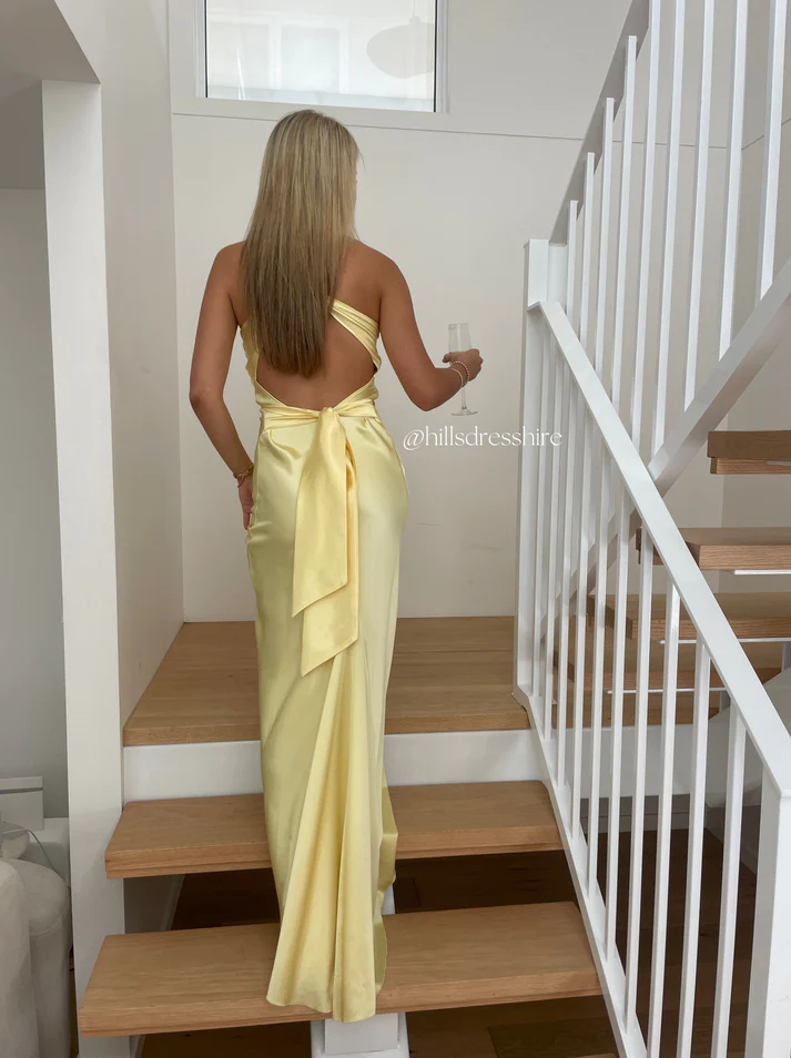 Simple A-Line V Neckline Grape Satin Long Prom Dresses Formal Evening Dress SD1389