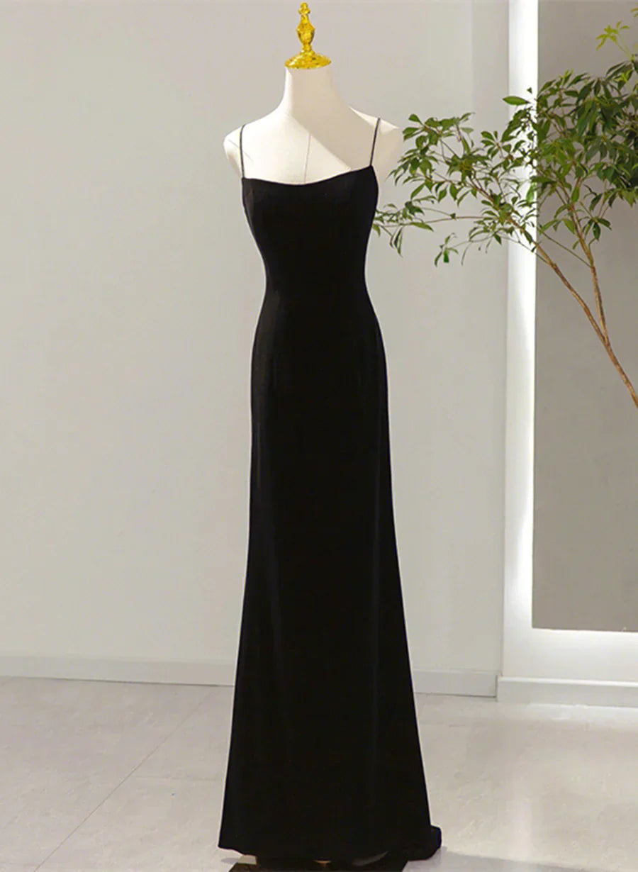 Simple Black Low Back Long Prom Dress, Black Floor Length Party Dress