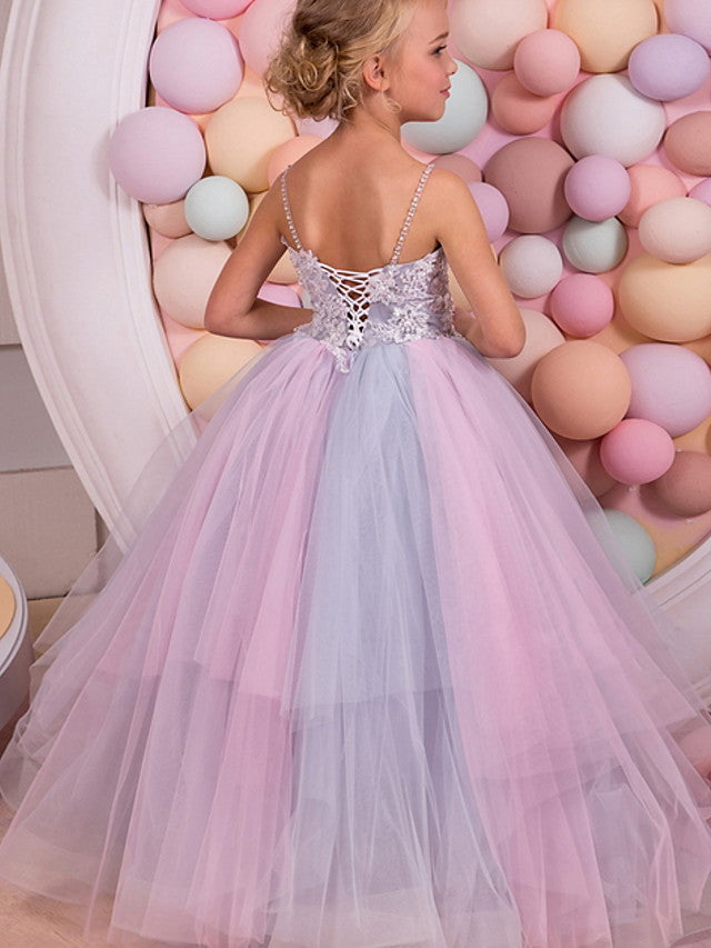 Sleeveless Spaghetti Strap Flower Girl Dress With Appliques for Special Occasions