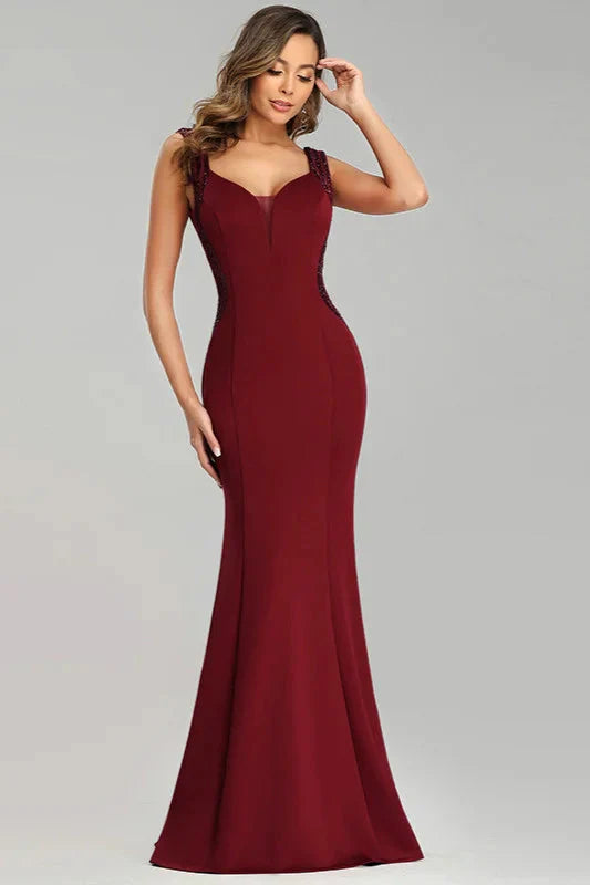 Sparkle Burgundy Sequins Mermaid Long Evening Prom Gowns