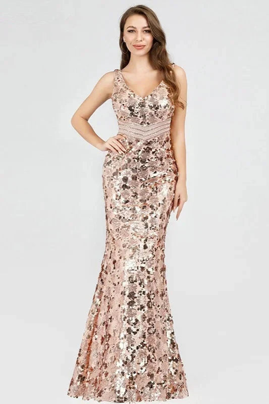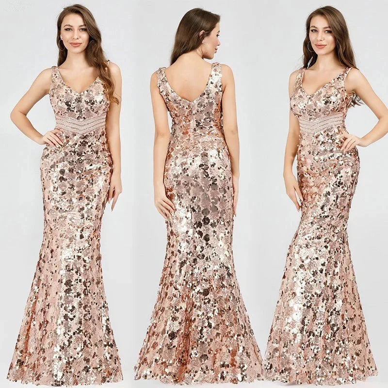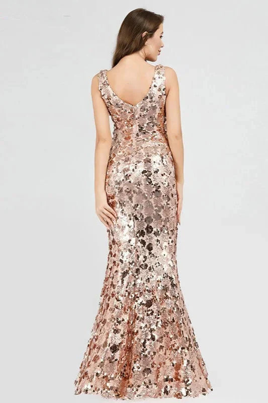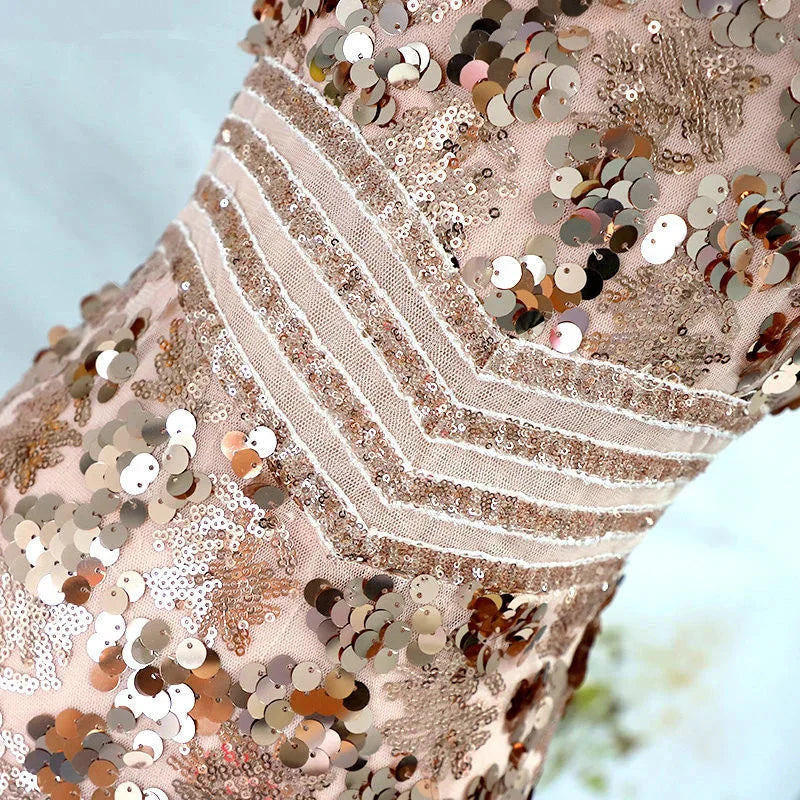 Sparkle Gold Sequins Prom Dress Long Mermaid Evening Party Gowns