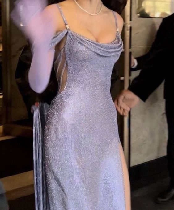 Sparkly Sequins Spaghetti Straps Sequin Side Slit Prom Dress P1494