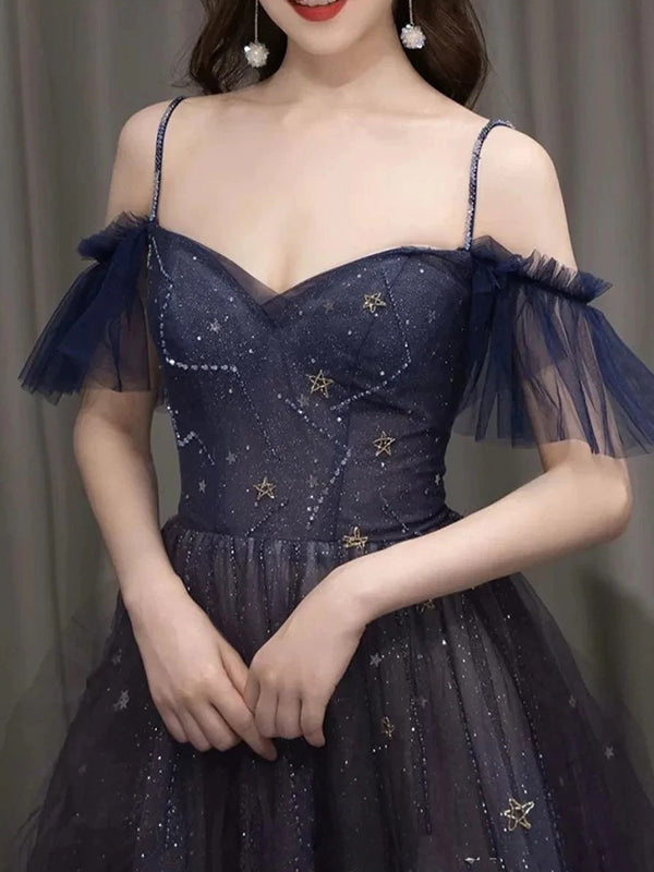 Sparkly Spaghetti Straps Off Shoulder A-line Prom Dress, OL557