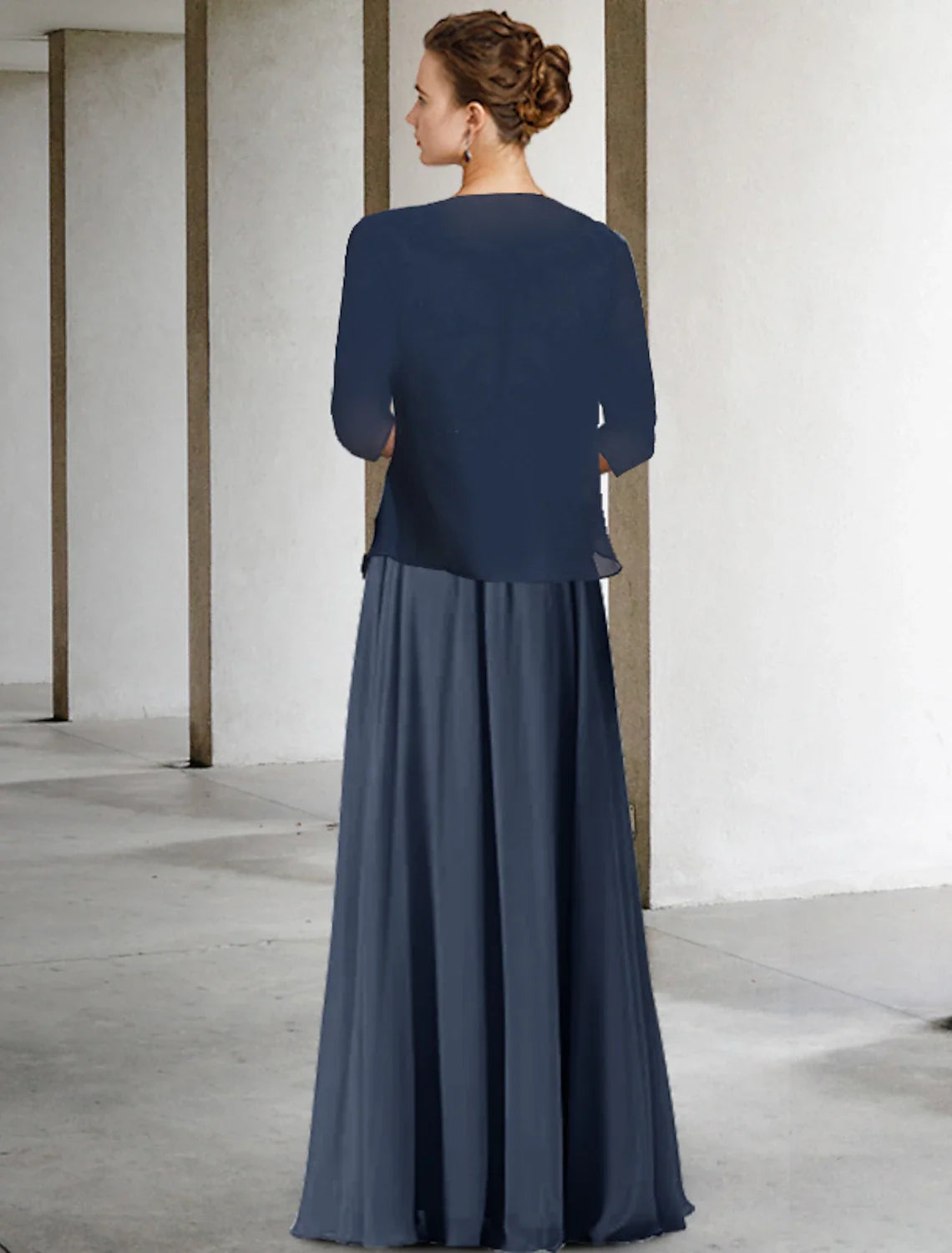 Two Piece A-Line Mother of the Bride Dress Plus Size Elegant High Low V Neck Asymmetrical Floor Length Chiffon Lace Half Sleeve Wrap Included Jacket Dresses with Pleats Appliques