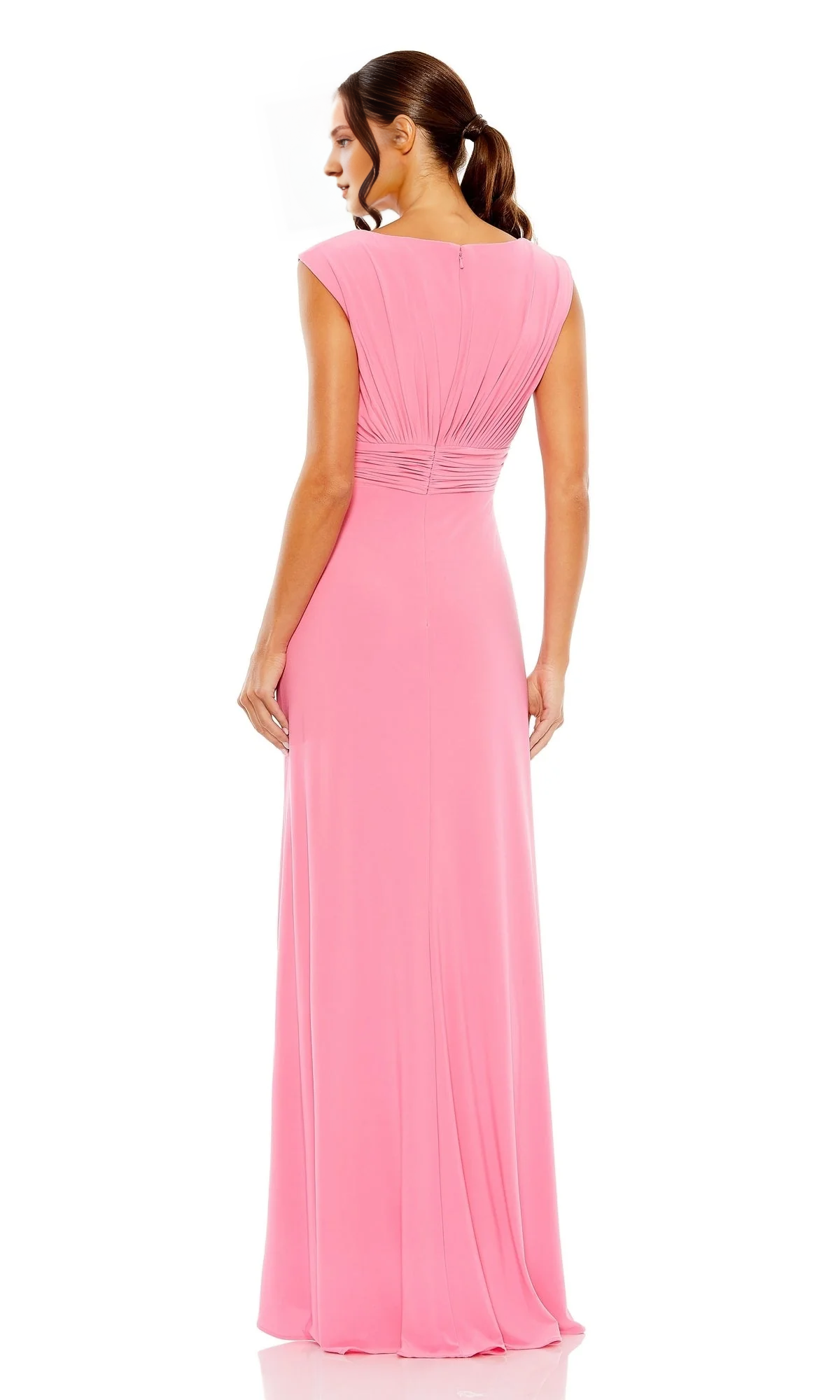 V-neck sleeveless fit high waist tight corset and floor length Prom dress