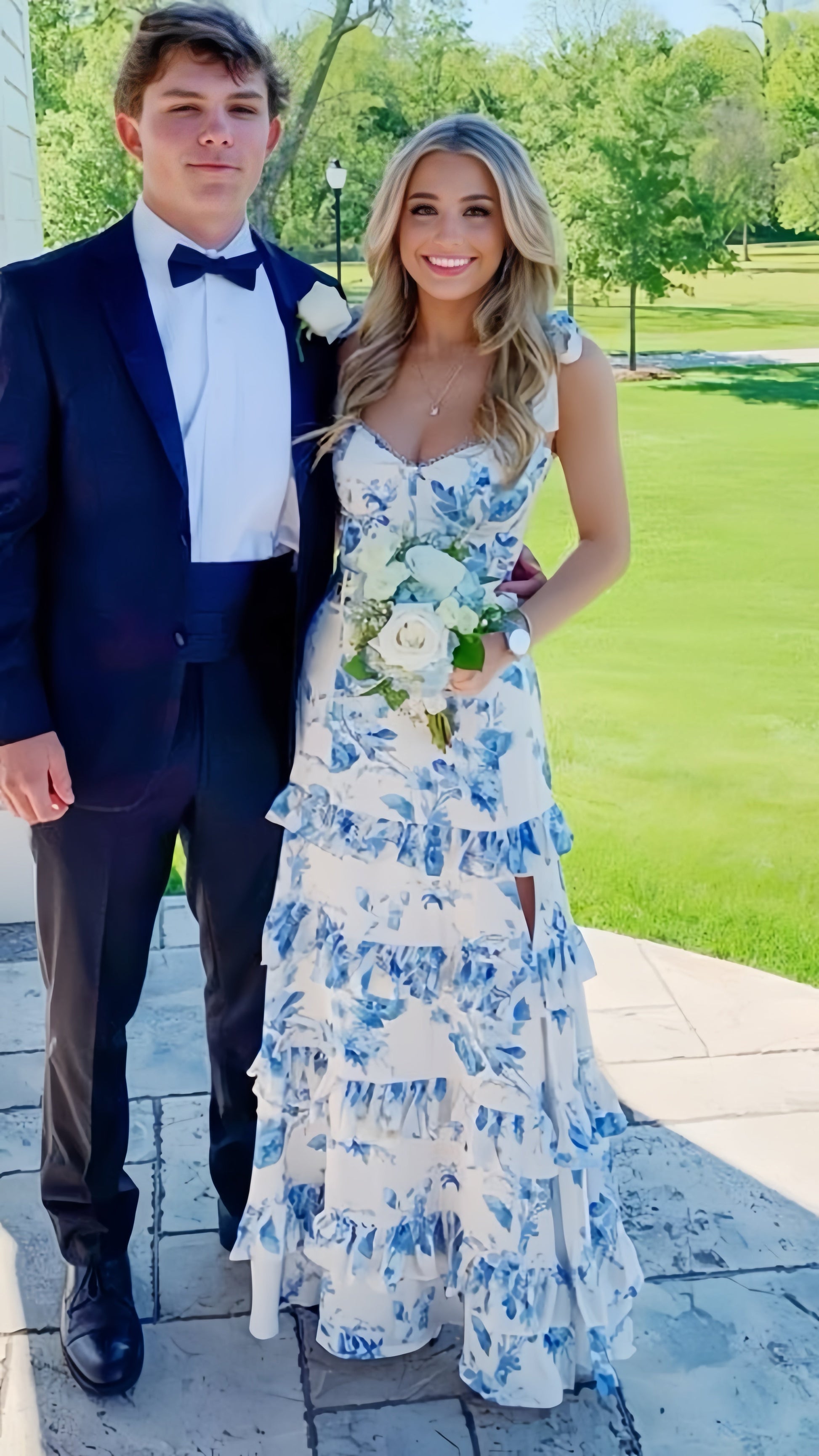 Flowy Floral A-Line Prom Dress Long Evening Dresses for Party Events